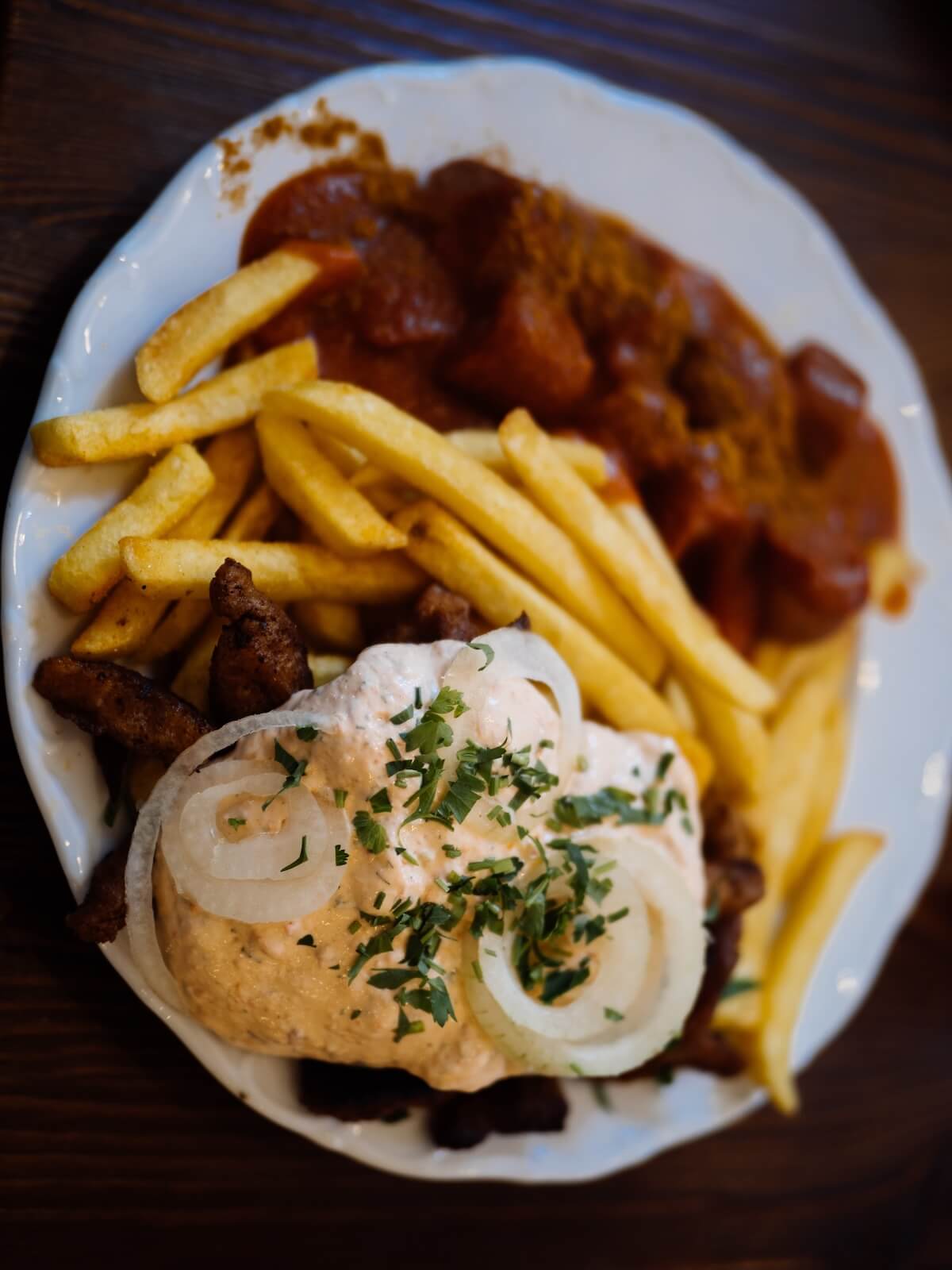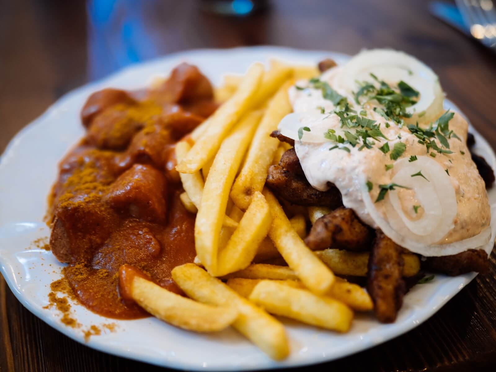 Drinnen erwartet euch ein modernes Ambiente mit einem lockerem Vibe: Sitzgelegenheiten, eine offene Küche und Tresen, sehr freundliches Personal. Ein besonderer Bonus: Eine riesengroße Auswahl an Kaltgetränken insbesondere Craftbiere, aber auch sehr leckere alkoholfreie Optionen und Softdrinks. Das Essen ist wirklich rein Vegan (für alle Veganer also ein sicherer Spot ohne Ausnahmen) und für alle Neugierigen ist es eine wunderbare, leckere Möglichkeit klassische Imbiss-Gerichte in veganer Version zu erleben. Mein persönliches Highlight ist der vegane Kebap mit Pommes. Soooo gut!! Da fehlt rein gar nichts.